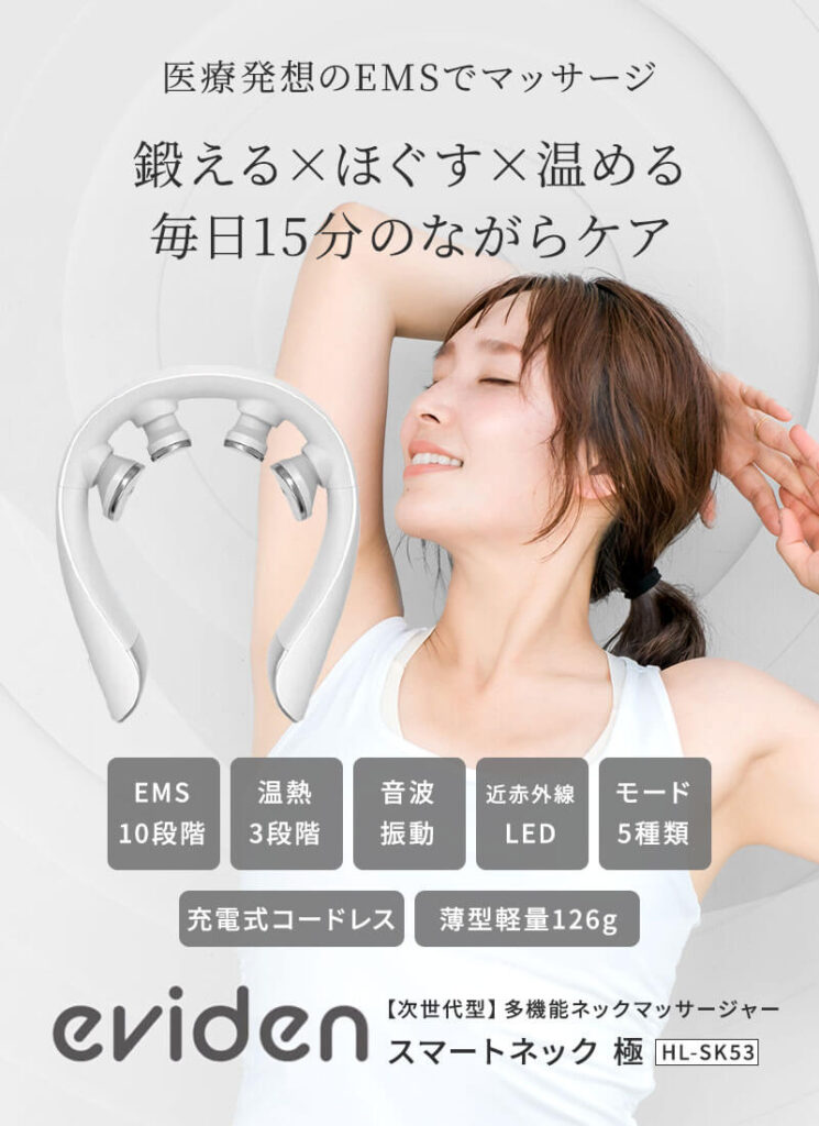 スマートネック極 商品一覧 X Facebook はてブ LINE コピー 2025.11.23 こんにちは(^^)/ ビューティコレクションNANAです♪ ☆新商品入荷☆しました。 【eviden スマートネック極】のご紹介となります。 EMS・温熱・振動・LEDの4つの機能で、首・肩回りの筋肉を『じんわり』『しっかり』ケアするスマートネック機器になります。 サロンで無料体験実施中なのでお気軽にお問合せください。 「EMS・温熱・音波振動・LED」4つの機能で首にアプローチ!eviden スマートネック極 HL-SK53EMS 温熱 音波振動 LED EMS運動機器 ヒーター 手軽 軽量 EMS機器 ¥14,300(税込)